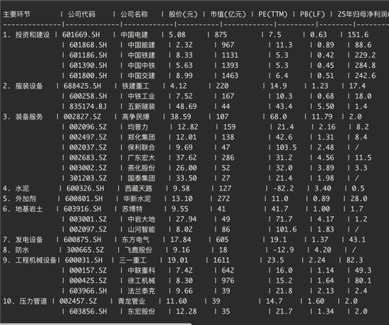 1 、天风证券表示,土建工程投资巨大,核心关注中国电建、中国能建;雅鲁藏布江下游地质环境复杂,地基处理工难度较大,弹性标的关注中岩大地;引水隧洞关键设备值得关注,重点关注隧道掘进机设备生产商铁建重工、中铁工业等;还有爆破工程等,建议重点关注高争民爆、易普力、广东宏大、保利联合和壶化股份;材料端重点关注水泥板块西藏天路(30%弹性)、华新水泥,以及减水剂板块苏博特(3-5%弹性)